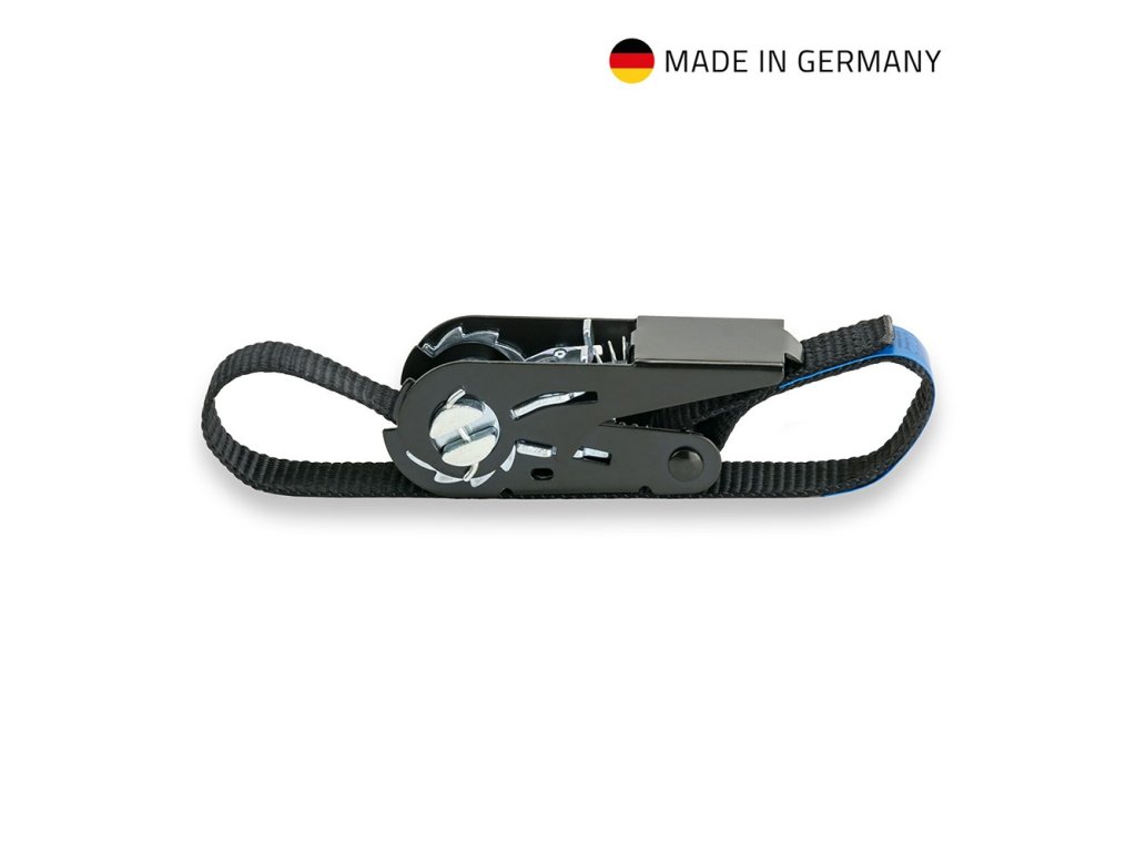 Popruhy sa skladajú z polyesterových popruhov s vysokou pevnosťou v ťahu (PES) s priemerným napnutím iba 4 % v kombinácii s vysokokvalitnou prítlačnou račňou. Dodávajú sa s povinnou modrou značkou s vyznačenou dĺžkou a prípustnou ťažnou silou. Vyrábajú sa v súlade s normou DIN60060/VDI 2701 a sú kontrolované skúšobným a certifikačným úradom (technickou odbornou komisiou) pre dopravu, pokiaľ ide o kvalitu a bezpečnosť.